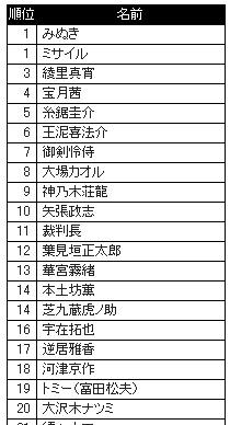 そしてなるほどくんが何故かトップ20にいない(38位)